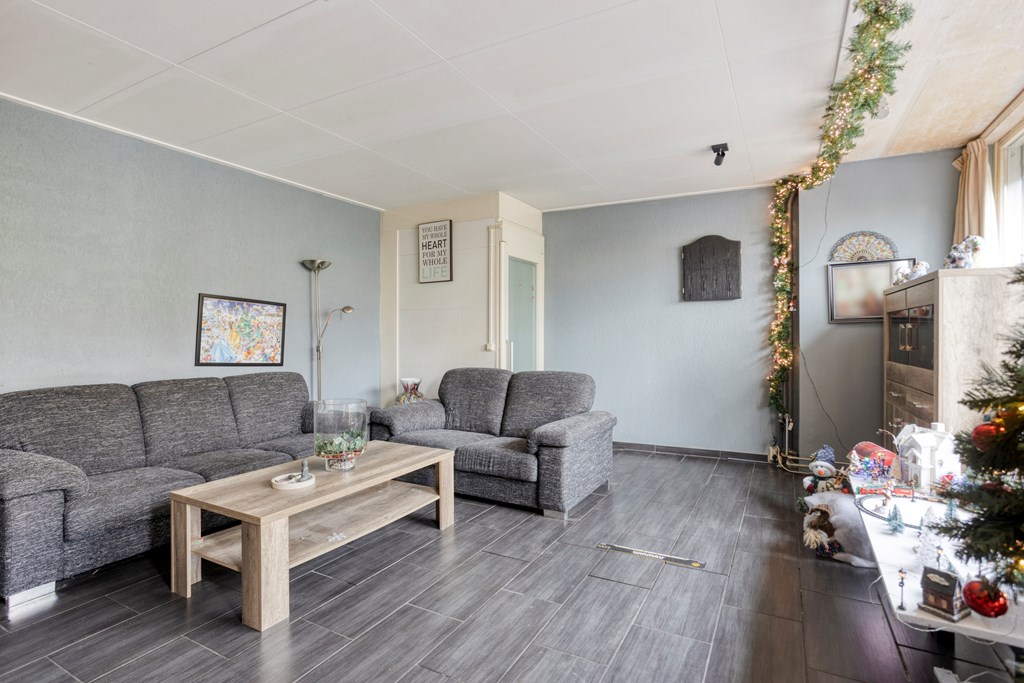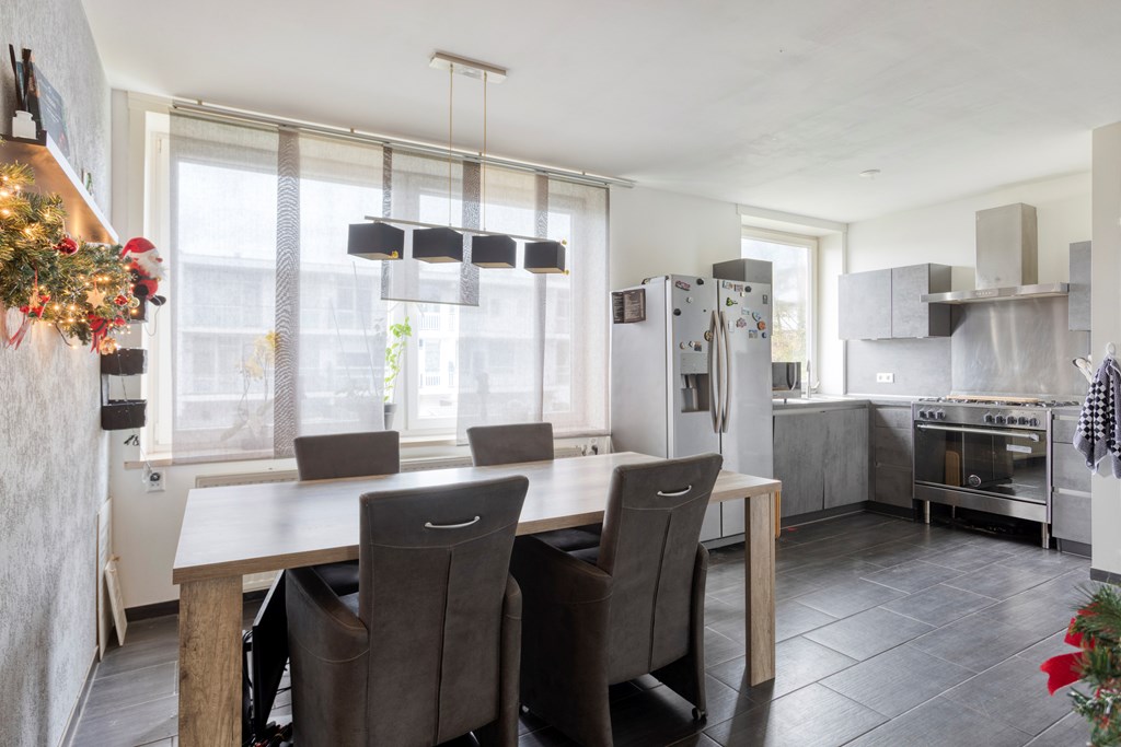 Wandel je verder door de woning, dan kom je terecht in de woonkamer. Dit is het kloppende hart van het huis – een veelzijdige ruimte waar jouw persoonlijke stempel tot zijn recht zal komen. Zet er misschien een lekkere loungebank neer, voeg wat favoriete planten toe; voilà, jouw woonkamer is het toneel voor luie zondagen, lange gesprekken en alles ertussenin.