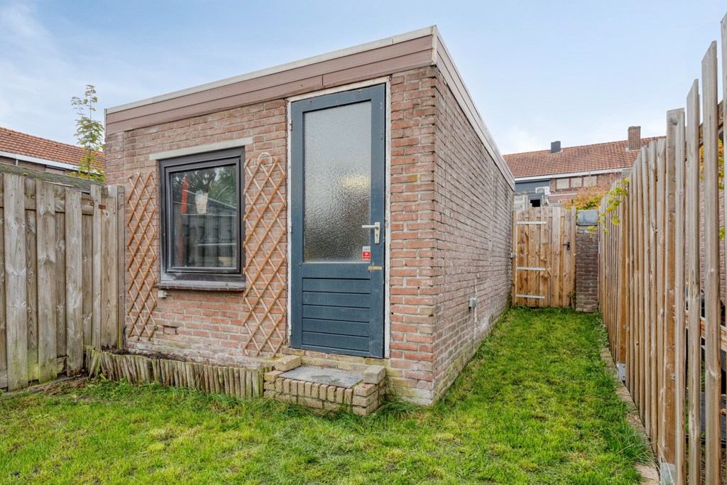Vanuit de keuken bereiken we de gezellige overkapping. Middels een trap komen we in de onderhoudsarme achtertuin met volop privacy. Aan de achterzijde is een achteruitgang.