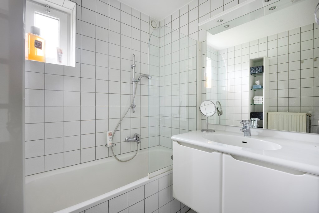 – Badkamer met bad en wastafelmeubel